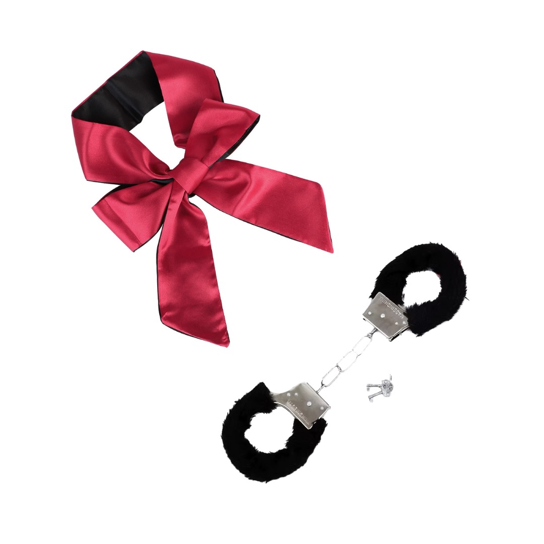 Alături de posterul LOVEQUEST, primești setul TEMPTY GRATIS, care include o mască roșie pentru ochi din satin și cătușe negre moi. Realizate din materiale prietenoase cu pielea și complet ajustabile, acest set bonus este perfect pentru cuplurile cărora le place tachinarea jucăușă și explorarea unor noi niveluri de apropiere.